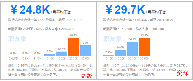 工资在数据库行业IT技术领域一直处于领先地位。下图是职友集全国数据库运维管理(DBA)平均工资(2021年9月),中级/高级职位的年薪可以达到30W年薪可以突破高级/高级职位50W/年:?- 大学生希望毕业后找到一份有前途的高薪工作(太多大学生毕业后失业)