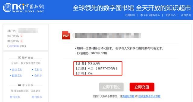 现在我们打开知网论文下载页面,页面显示0.5元/页,占据四页长度的论文需要2 元。但是对于科研论文来说,参考论文不止一篇,论文页数远远大于4,可想而知。