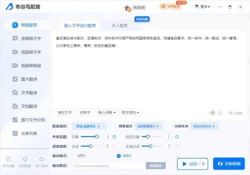 软件名已经很好地提醒了我们,这是一个AI智能配音软件不仅可以单独配音,还可以实现多人对话配音,提供多音词、多发音人、数字阅读等特殊功能,可以设置更多的文本内容。此外,它还提供了100多种真实主播的音效,支持调整语速、语调和背景音乐,使配音更加情感化,实现真实配音。