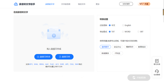 我们还可以通过录音到文本助理在线网站实现音频到文本操作。我们还可以轻松地完成转换,而无需下载软件。我们支持自定义设置识别语言和导出格式,以满足各种转换需求。该网站还有许多其他功能。感兴趣的朋友可以看看~