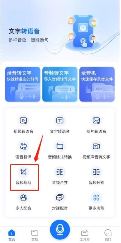 在主页界面找到音频剪辑工具,单击打开