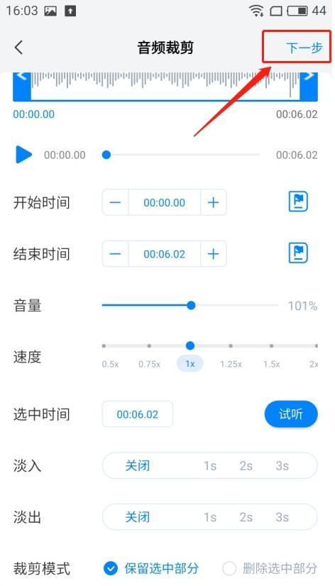 然后进入编辑界面,我们在这个界面操作音频编辑。