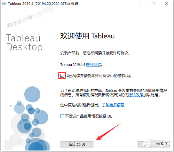 4.修改路径地址中的首字符C本例可更改安装位置D盘子,去除检查Tableau点击安装产品更新。