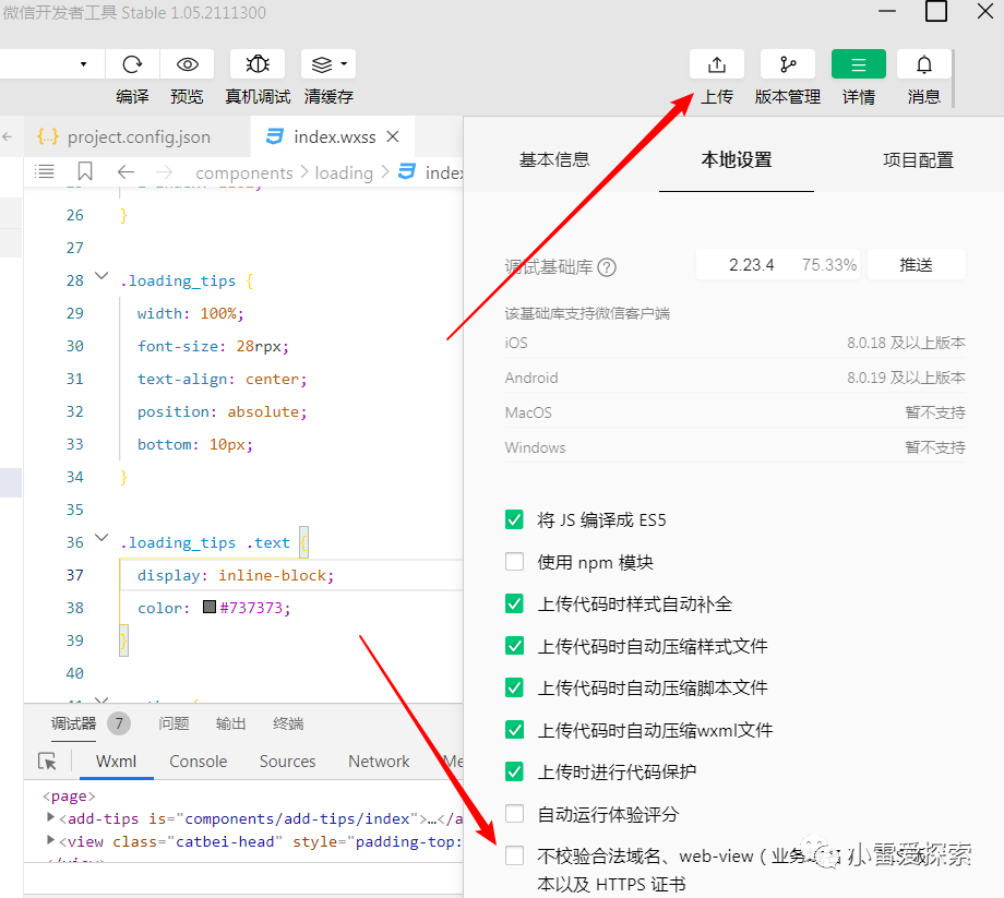 4、下载小程序开发工具,导入小程序源代码或模板,做一些基本配置,然后上传。
